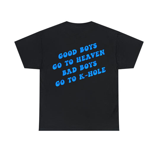 T-Shirt: "GOOD BOYS GO TO HEAVEN, BAD BOYS GO TO K-HOLE"